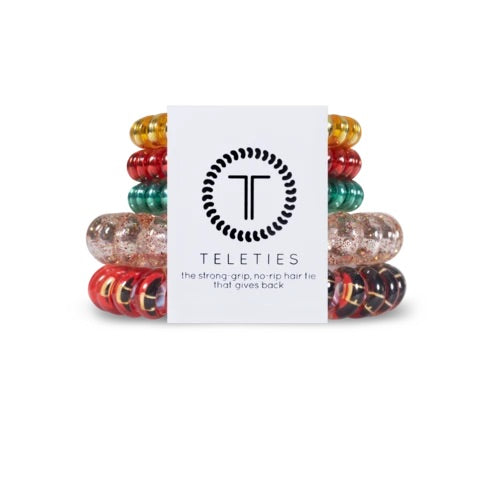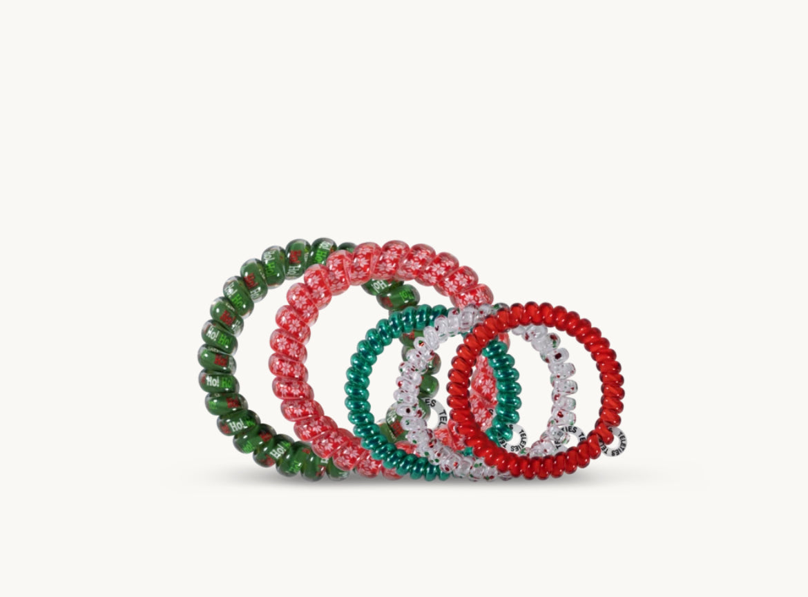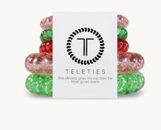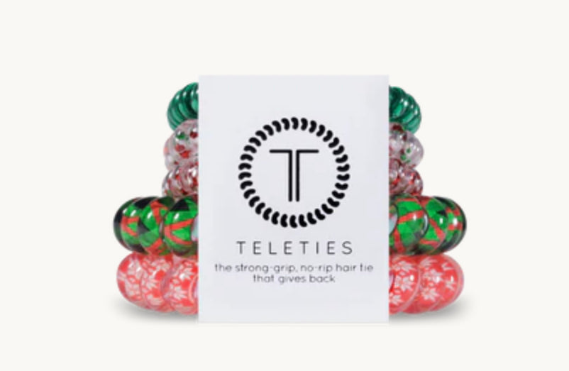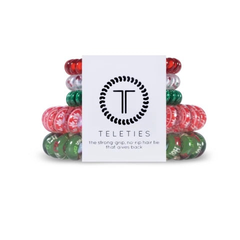 Each set comes with 5 teleties. 2 large and 3 small. LIMITED EDITION! Perfect for stocking stuffers or simply to show offyour holiday spirit.Β