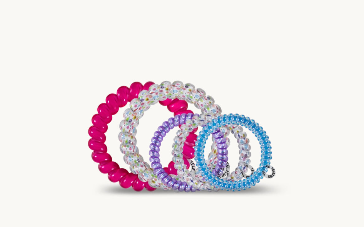 These are also completely shrinkable! Place your teletie in a dish of hot water if they appear stretched out and watch as they return to their normal size.