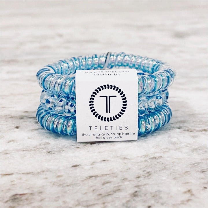 These are also completely shrinkable! Place your teletie in a dish of hot water if they appear stretched out and watch as they return to their normal size.