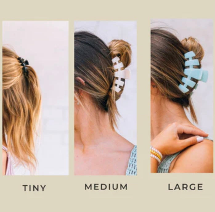 Tiny clips are great for little kids, super thin hair, and half-up hairstyles.ย The tiny clip is 1.77 inches long.
