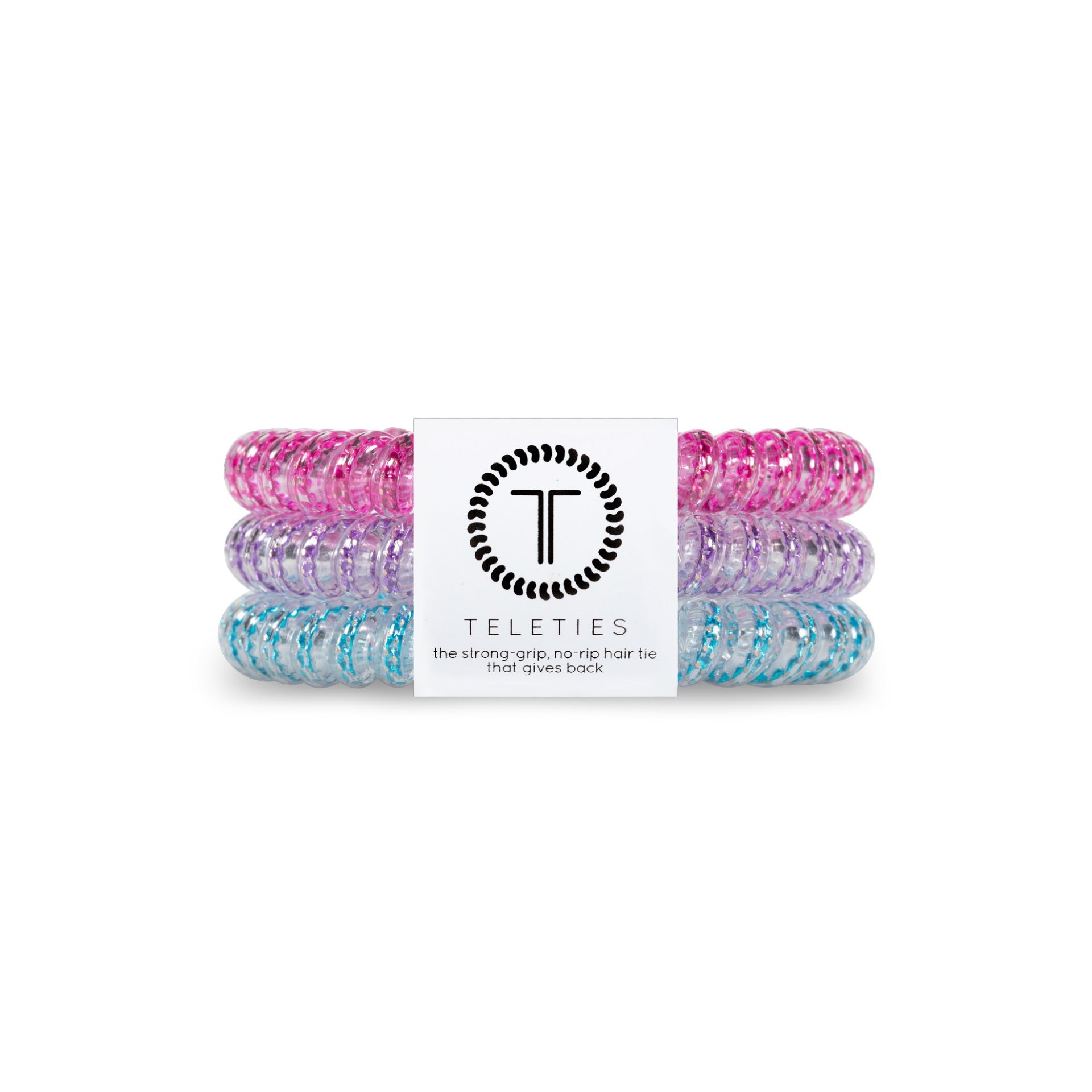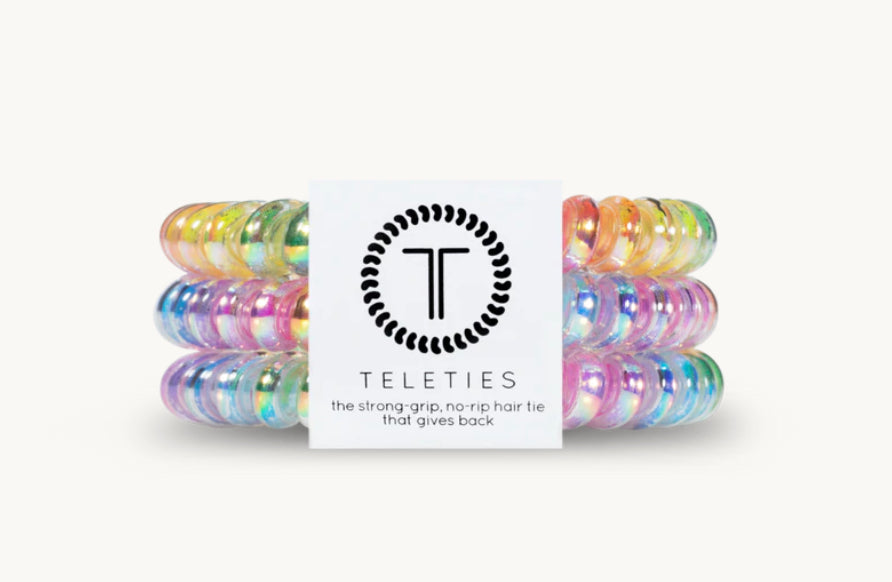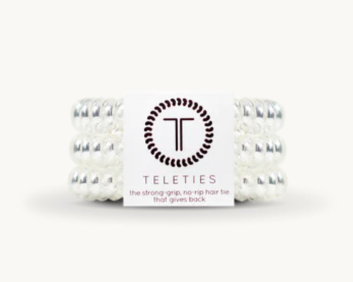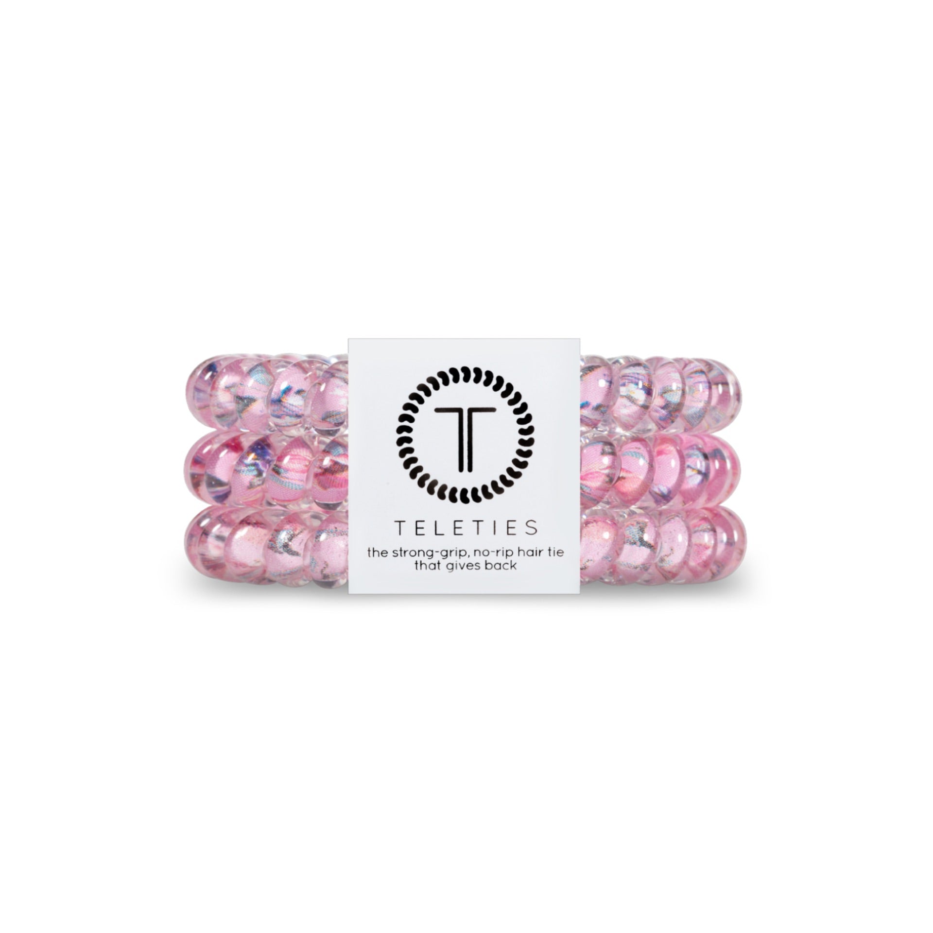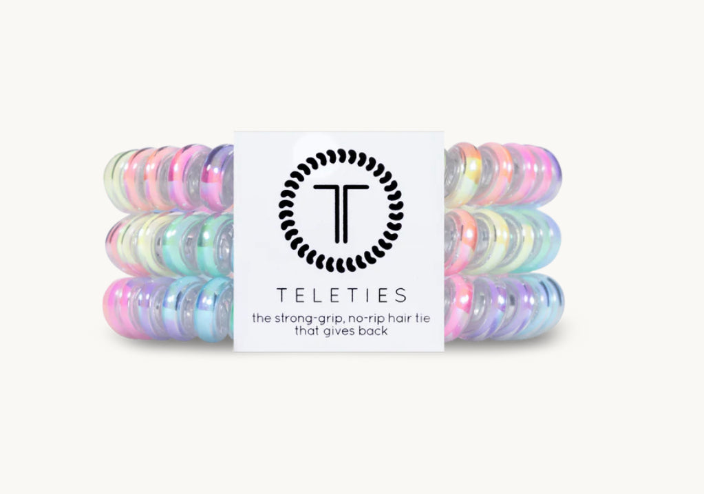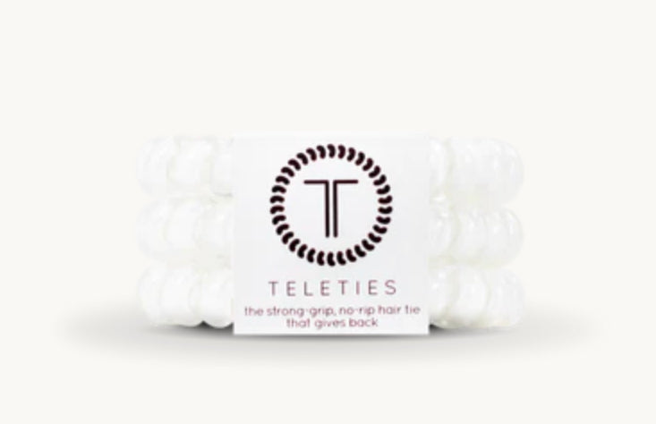 These are also completely shrinkable! Place your teletie in a dish of hot water if they appear stretched out and watch as they return to their normal size.