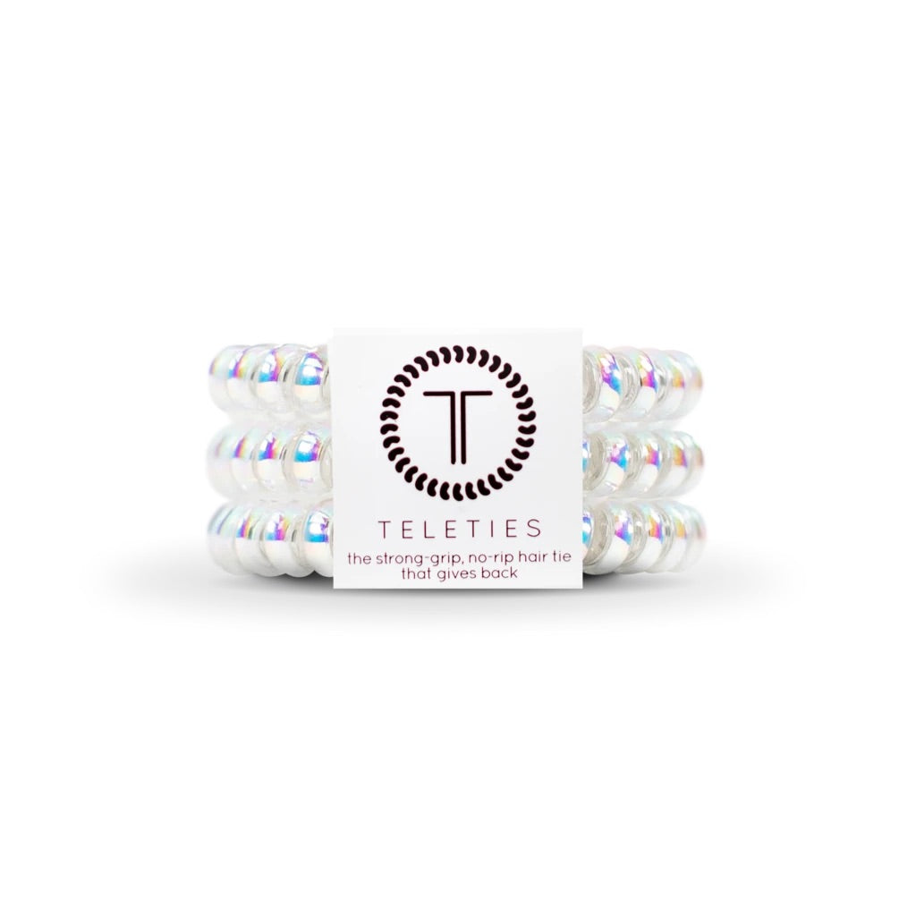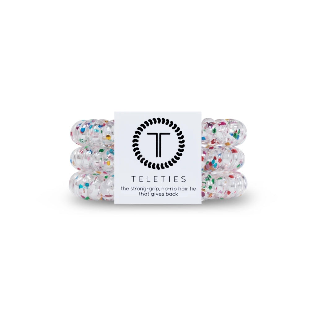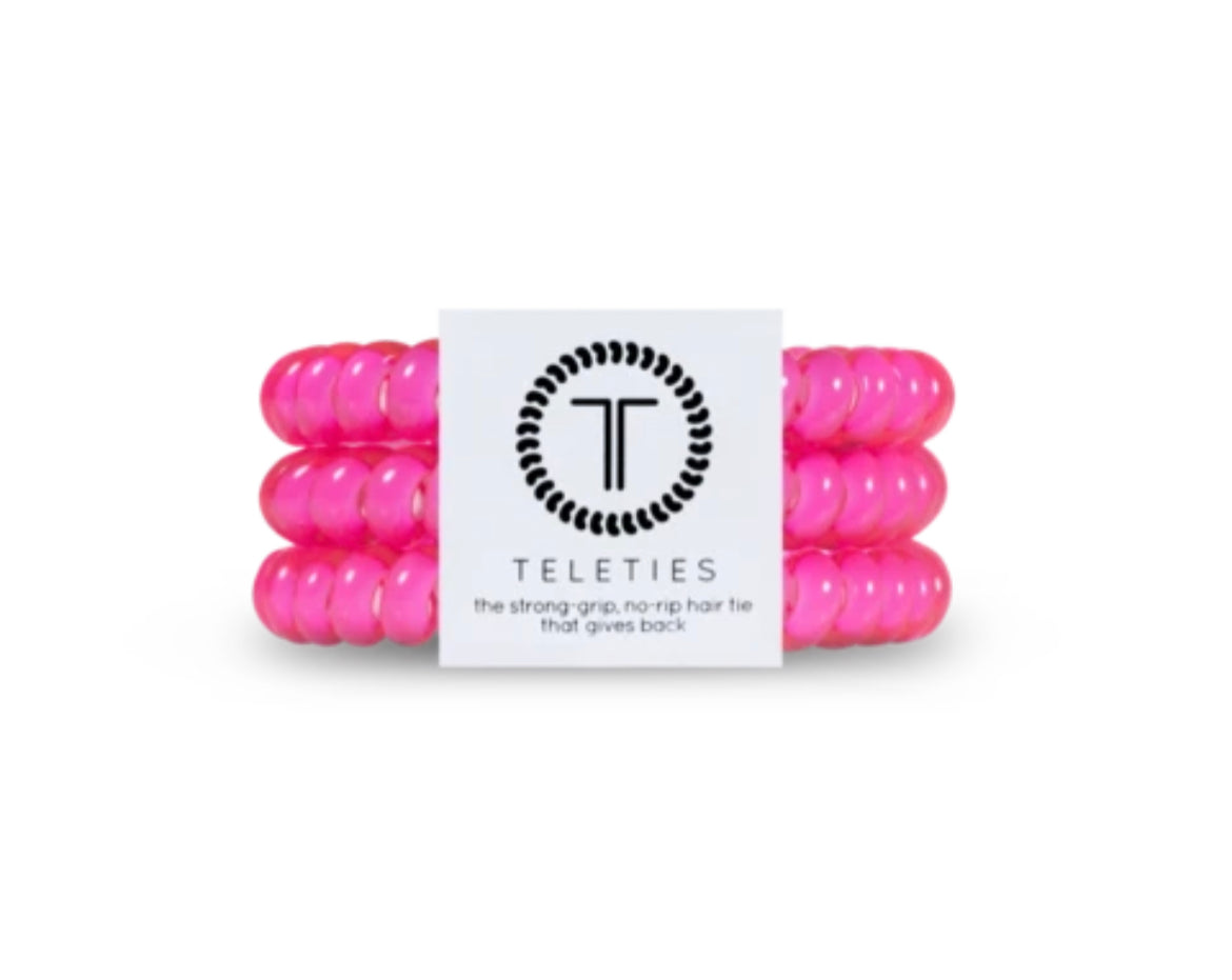 These are also completely shrinkable! Place your teletie in a dish of hot water if they appear stretched out and watch as they return to their normal size.
